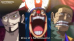 Soudain les pirates de Barbe Noire apparaissent derrière les navires de guerre de la Marine. Un puissant tremblement de mer pousse le navire de Barbe Noire vers Amazon Lily. La Marine dit que les Rois des Mers vont remarquer le tremblement de mer.