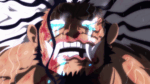 On voit ensuite un montage avec Newgate, Linlin, Kaidou et Shakky qui ferme l’incident de God Valley. L’île de God Valley coule dans la mer. Il n’y a pas de lasers ni d’explosions, juste l’île qui sombre.