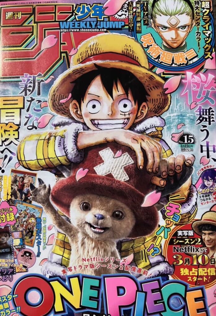 L’anime One Piece est en pause. Il reprend en avril 2026 de façon saisonnière avec 2 premiers Cours de 12 épisodes chacun pour l’arc Elbaph. Pour le manga, le prochain chapitre 1176 sort au japon le 8 mars (le 5 mars sur le net.) dans le Weekly Shônen Jump N°15 (2026). Il y a donc actuellement 49 chapitres d’écart entre l’anime et le manga.