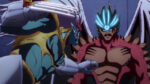 Murakami, armé d’un Kogetsu noir, et Kageura, équipé du Scorpion, la lame métamorphe, s’affrontent. Dans le même temps, les combats s’intensifient de toutes parts dans le centre commercial, quand le bâtiment se retrouve soudain plongé dans l’obscurité. Le stratagème imaginé par la Suzunari-1 va-t-il porter ses fruits ?